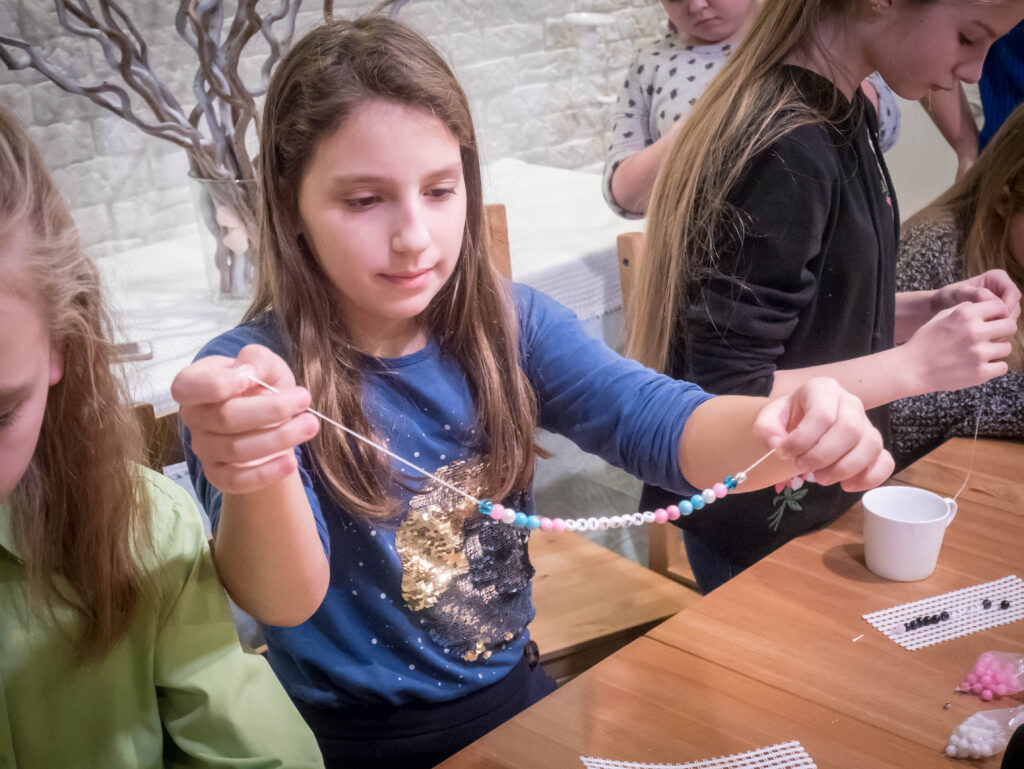 ✔︎ Украшение на шею и браслет (или серьги). Девочки учатся подбирать цвета и формы, работать с цепочками, бусинами и камнями, создавая стильные украшения, которые подчеркнут их индивидуальность, разовьют вкус и фантазию, позволят почувствовать себя дизайнерами и унести домой собственный аксессуар и вдохновение!